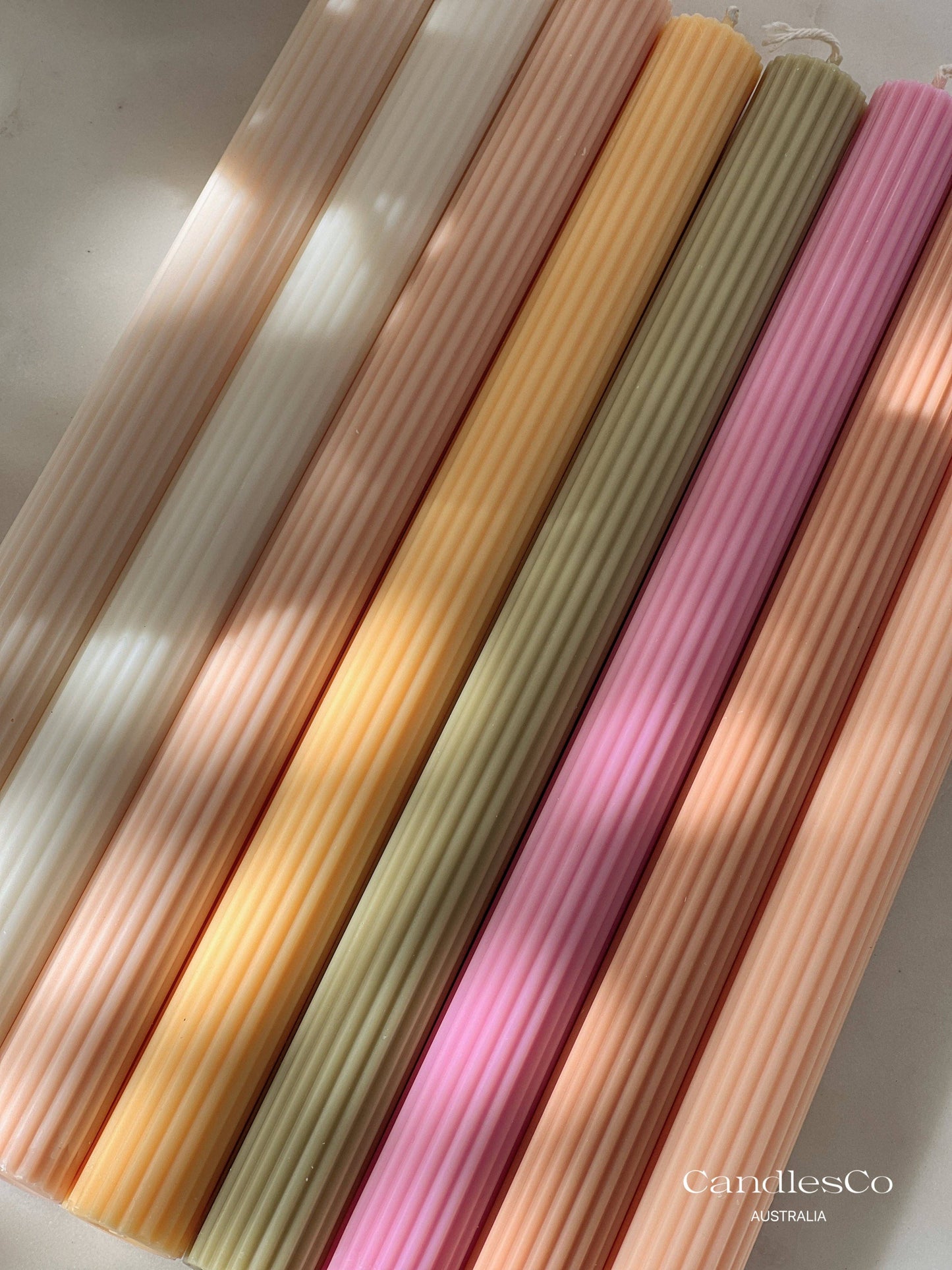 The Ribbed Taper Candles bring a modern twist to the classic taper design. Hand-poured in CandlesCo Perth studio using a natural soy wax blend, these sculptural candles feature elegant ribbed detailing and come in a range of soft, earthy colours to suit any occasion. Perfect for weddings, dining settings, or styled as home décor, these tapers are designed to elevate every table or shelf with a timeless glow. Crafted from 100% natural soy wax blend.