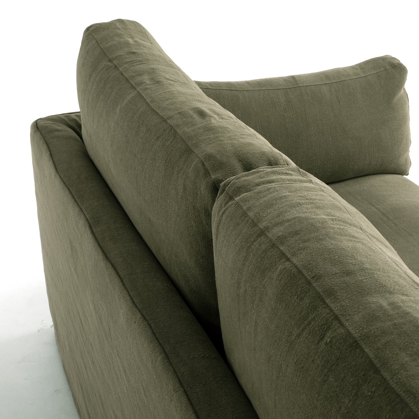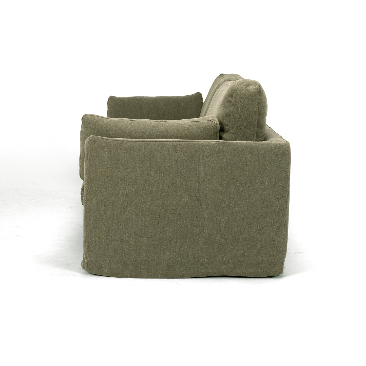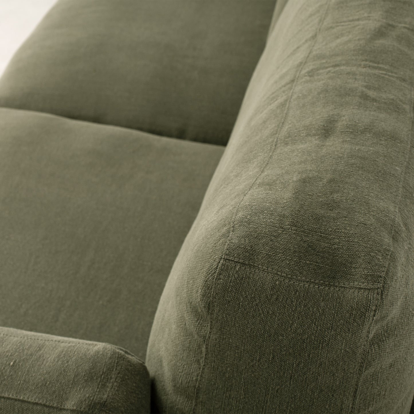 Streamlined arms keep things looking effortless, while the roomy cushions and generous sit invite the kind of lounging that accidentally turns into a whole afternoon. The neatly tailored slipcover gives it that easy, refined feel — and slips off whenever life (kids, dogs, crumbs) demands a quick reset.