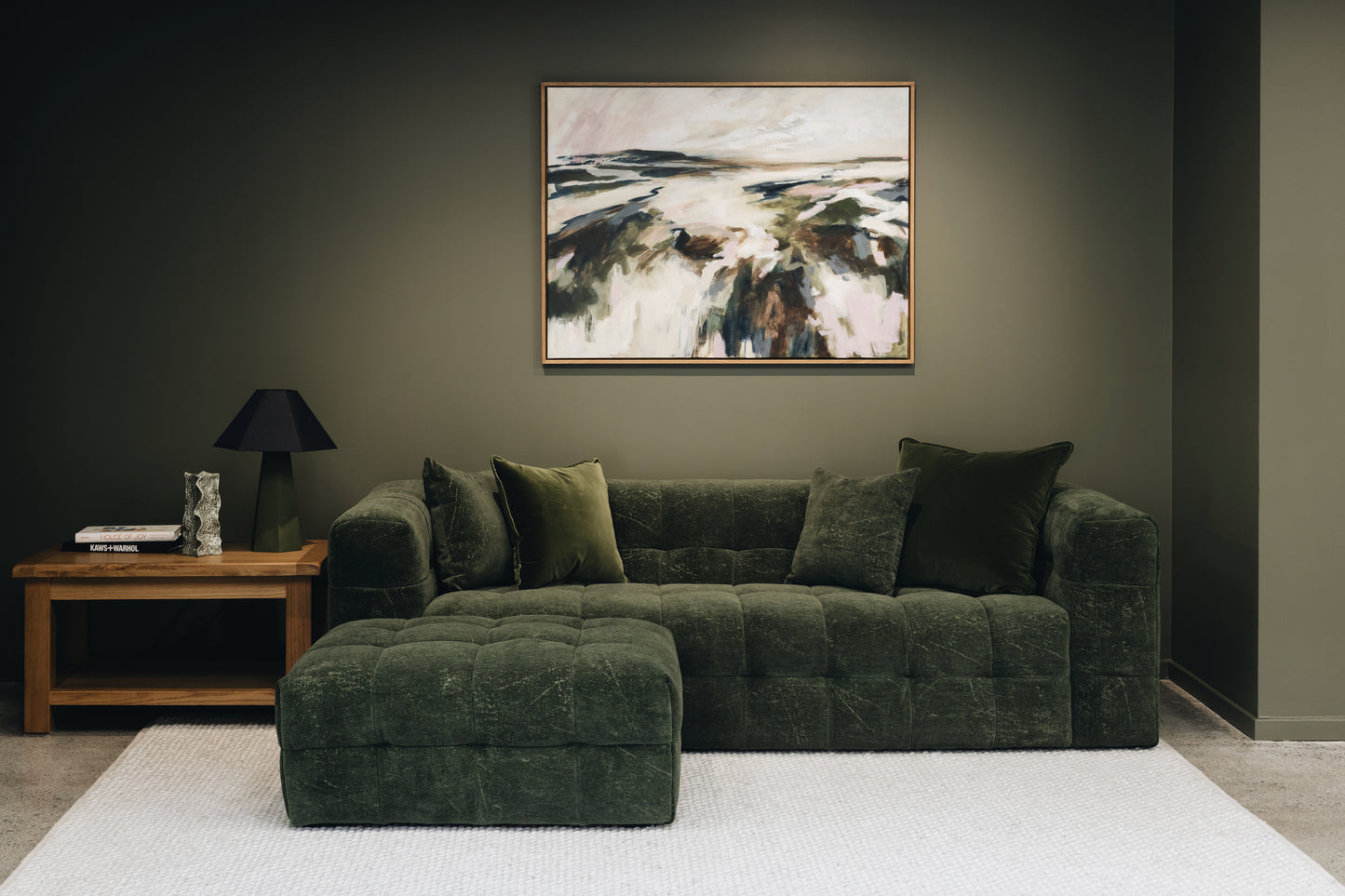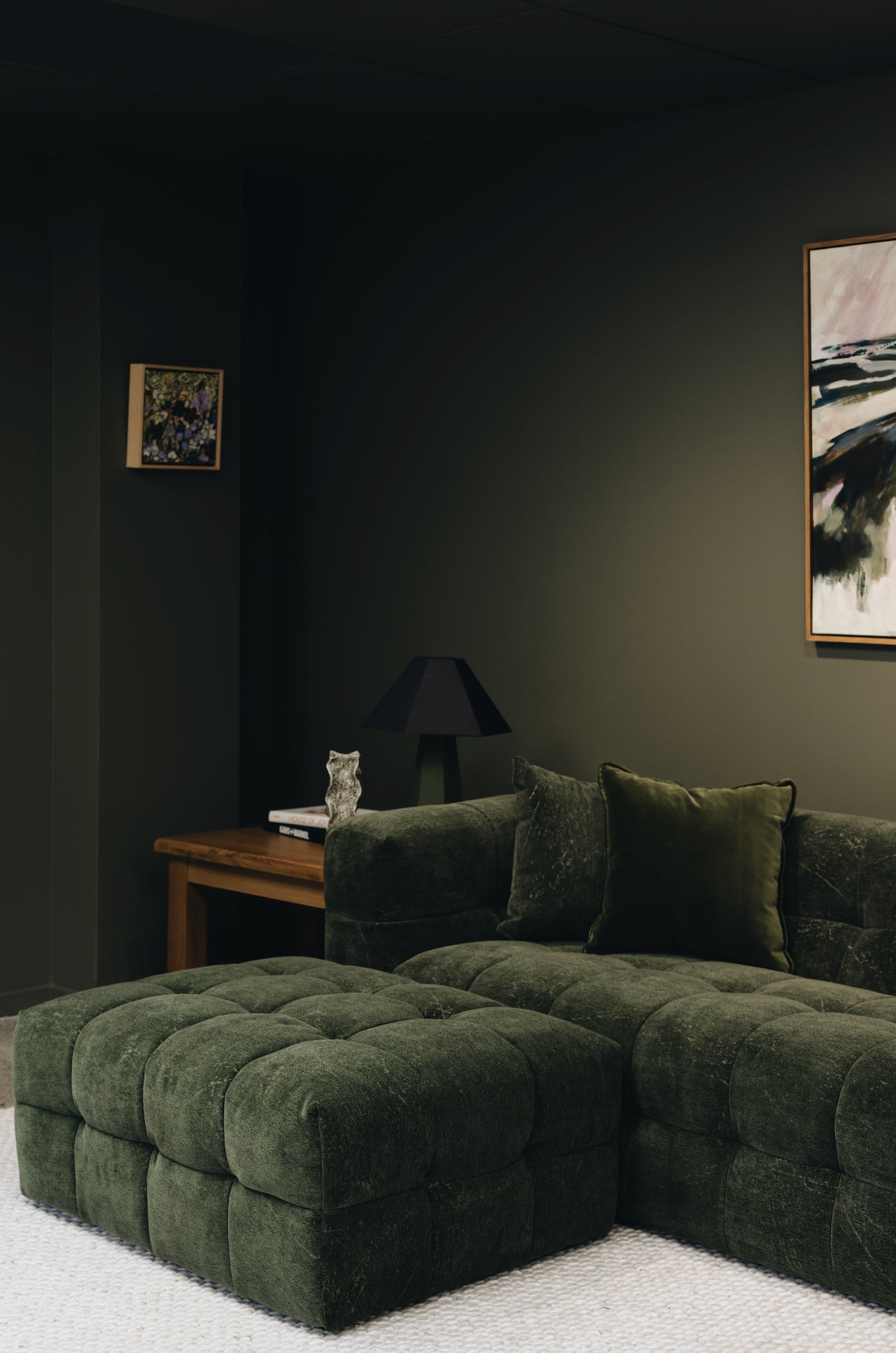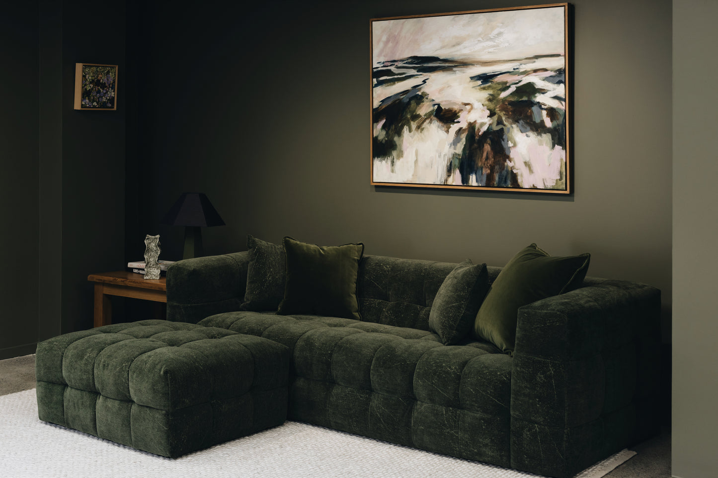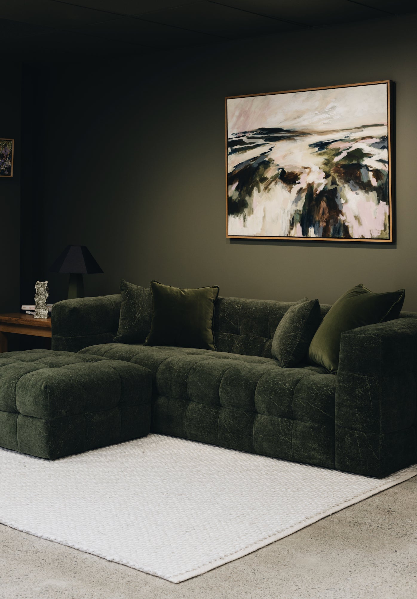 - A textured velvet-style fabric that brings depth, mood, and a touch of quiet drama
